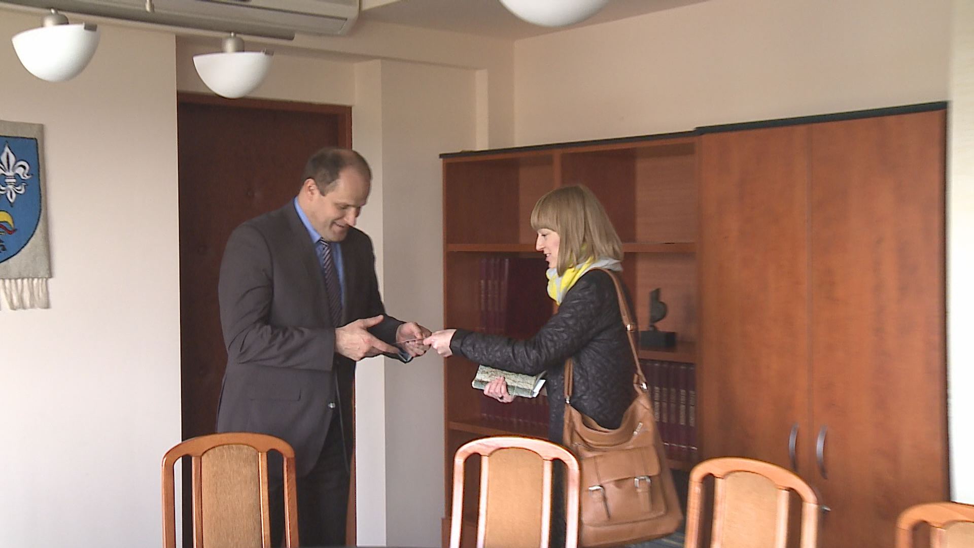 Delegacja Zespołu Szkół i Placówek Oświatowych BSTO im. Zbigniewa Herberta w Bełchatowie wręczyła dziś Markowi Jasińskiemu, wicestaroście bełchatowskiemu, gustowne zakładki do książek z wydrukowanymi na nich fragmentami tekstów Herberta – jednego z największych polskich poetów.