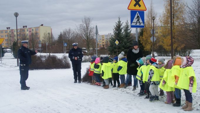 Niecodzienną lekcję na świeżym powietrzu w asyście policji miały przedszkolaki z "piątki".