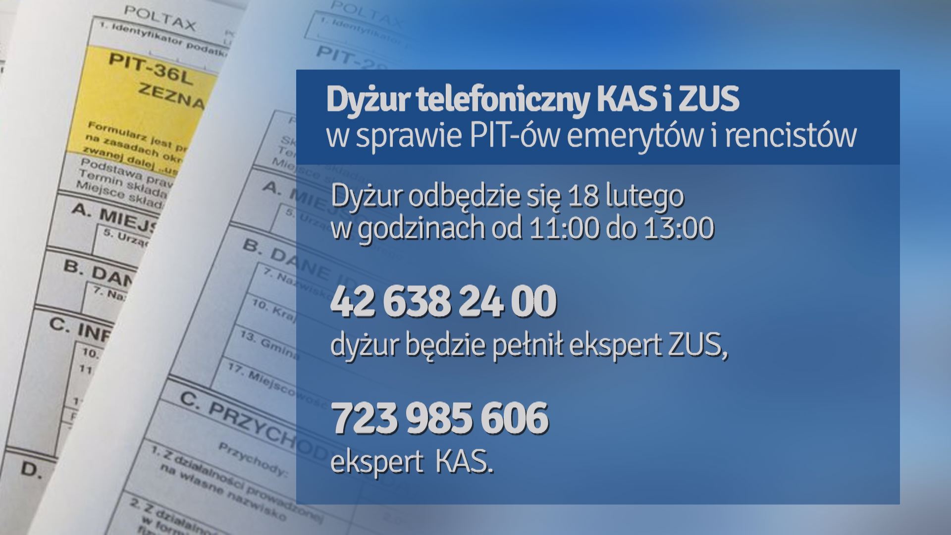 Izba Administracji Skarbowej w Łodzi oraz Zakład Ubezpieczeń Społecznych I oddział w Łodzi, zapraszają na dyżur telefoniczny dla emerytów, rencistów i pozostałych świadczeniobiorców, którzy choć raz w ubiegłym roku pobrali świadczenie z ZUS i otrzymają w związku z tym od Zakładu deklaracje podatkowe PIT 40 A, PIT 11 A lub PIT 11 – za 2020 r.