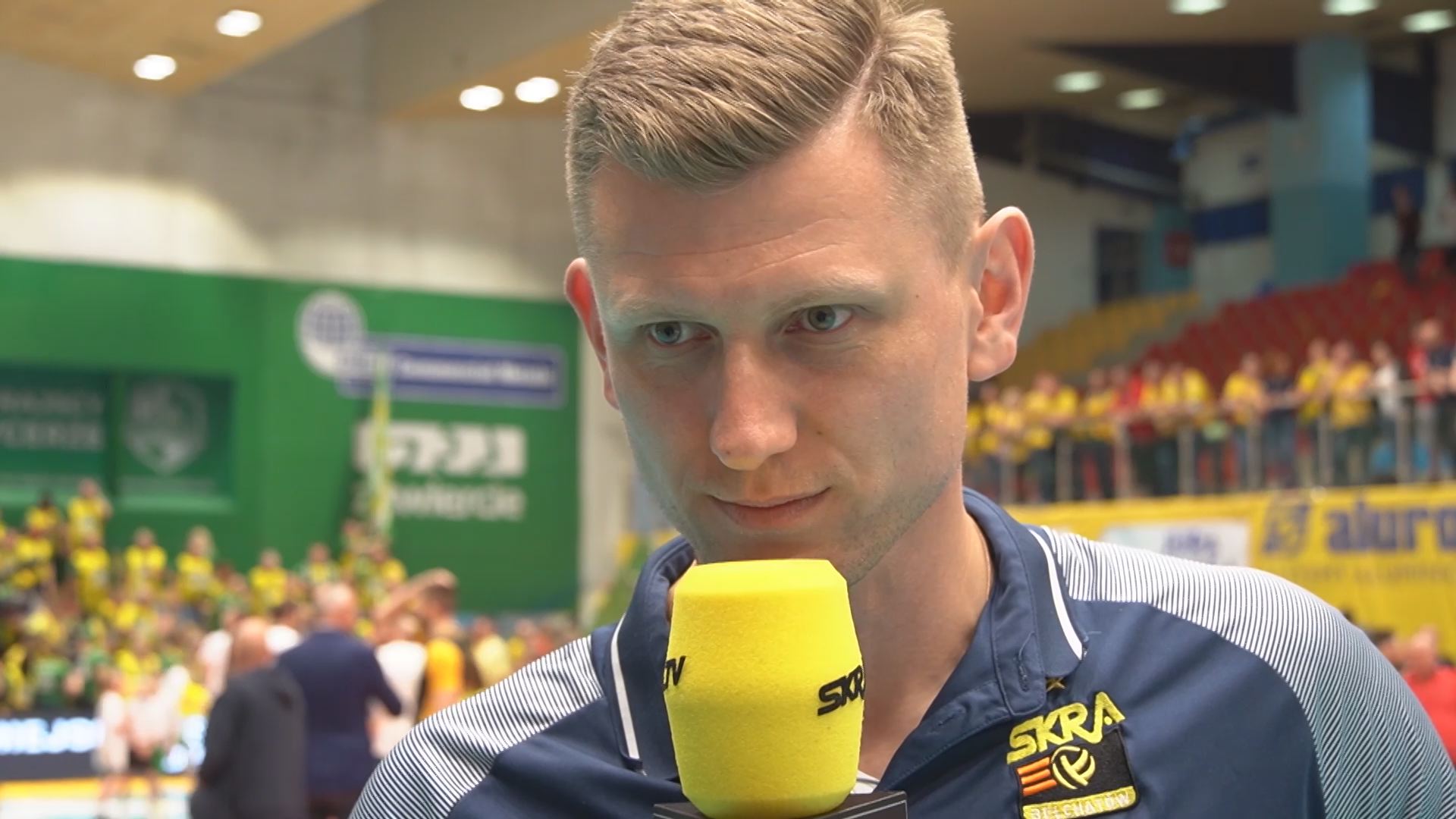 PGE Skra: Łomacz, Ebadipour, Kłos, Atanasijević, Kooy, Bieniek, Piechocki (libero) oraz Schulz, Mitić, Taht