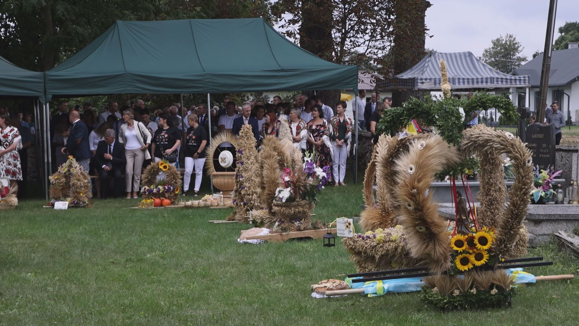 Podczas dożynkowych uroczystości nie mogło zabraknąć tradycyjnych wieńców dożynkowych, wykonanych z kłosów zbóż, owoców, warzyw i polnych kwiatów, które przygotowało 14 sołectw z terenu gminy.
