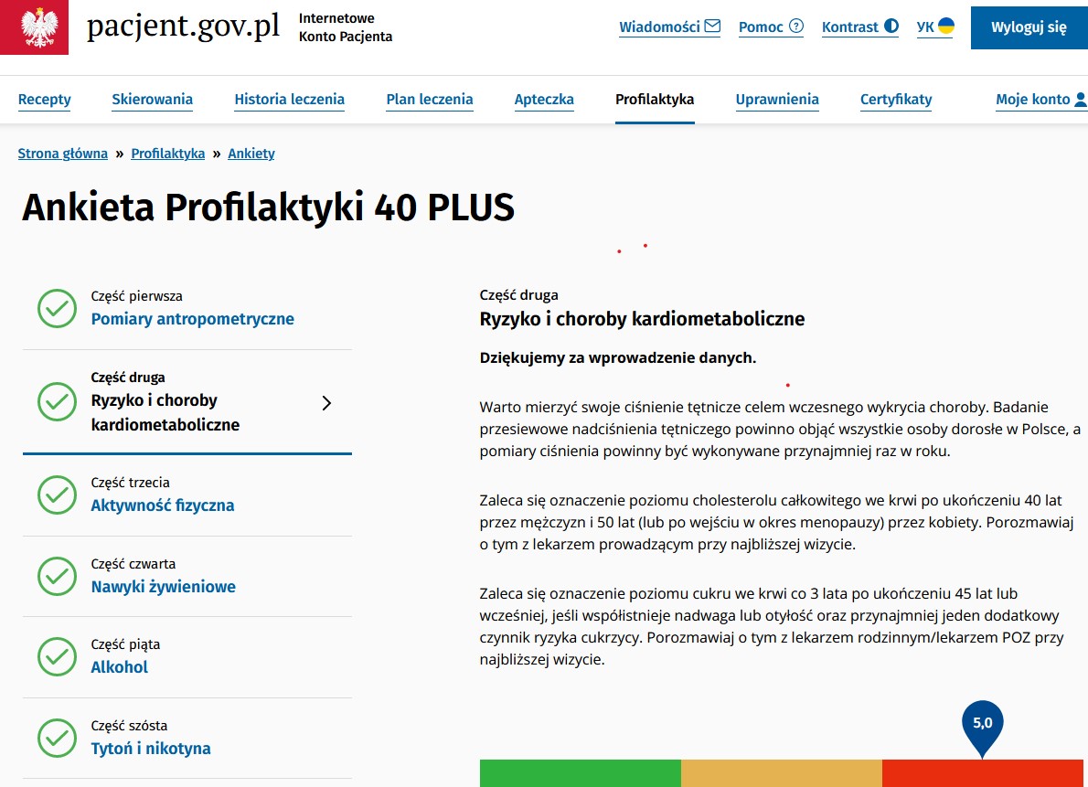 Pierwszy krok to wypełnienie ankiety o swoim zdrowiu. Odpowiedz na pytania. Ankietę wypełnisz w swoim Internetowym Koncie Pacjenta (IKP) lub w aplikacji mobilnej mojeIKP. Znajdziesz ją w zakładce „Profilaktyka”. Ankiety Możesz to zrobić również w placówce medycznej, która realizuje program.