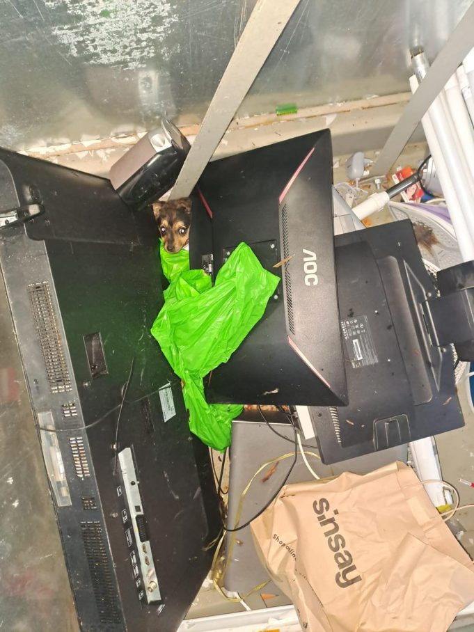 Pojemnik na elektroodpady, a w nim pies, którego skomlenie usłyszały przebywające nieopodal dzieci. To właśnie ich niepokój doprowadził do wstrząsającego odkrycia. Zwierzę nie miało szans, by samodzielnie się z niego wydostać.