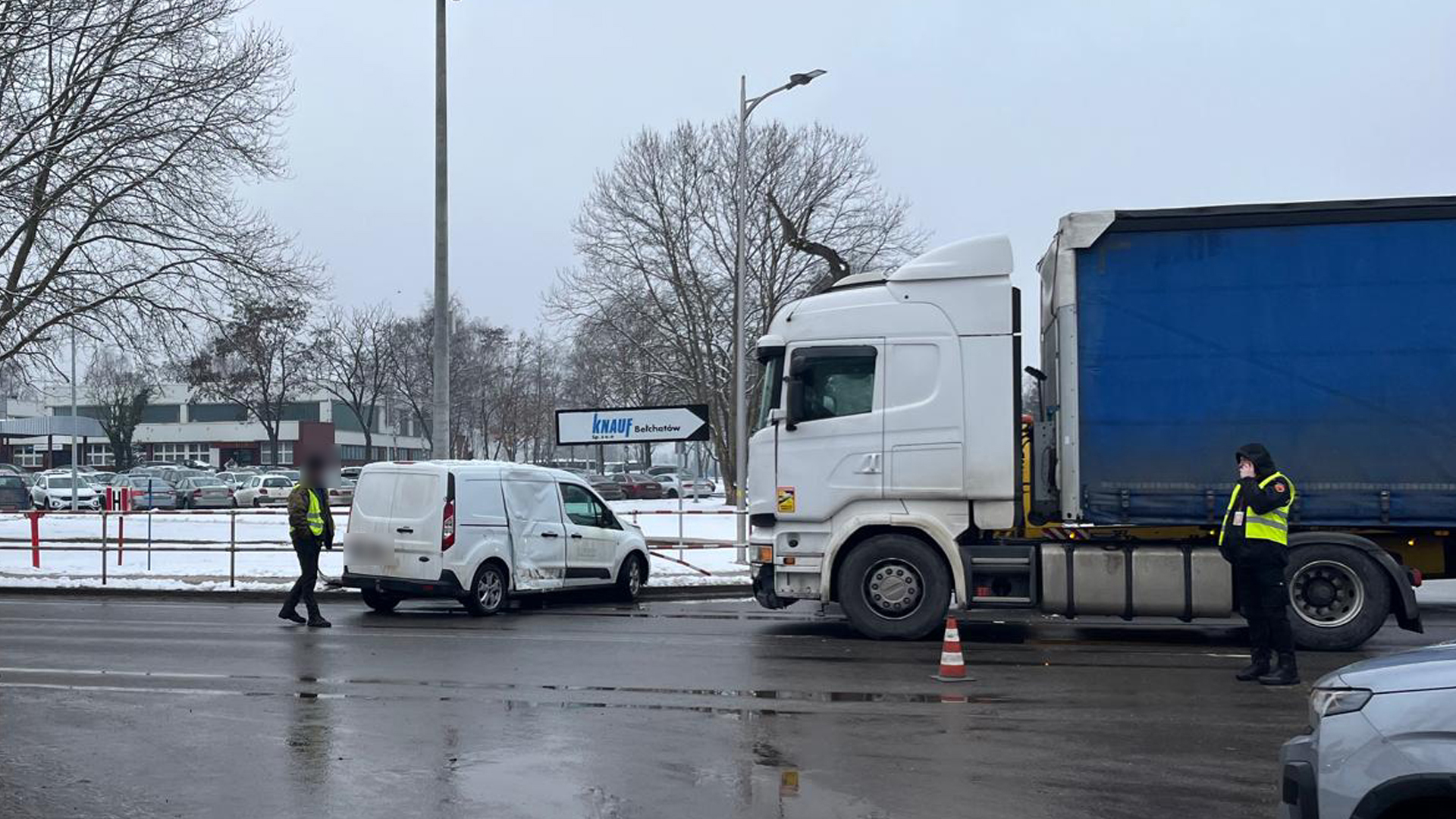 18 lutego 2026 roku przed godziną 13:00 do Komendy Powiatowej Policji w Bełchatowie wpłynęło zgłoszenie o zdarzeniu drogowym w miejscowości Rogowiec na skrzyżowaniu ulicy Świętej Barbary z ulicą Transportową. W toku poczynionych czynności ustalono, że 61-letni kierujący samochodem ciężarowym marki Scania jadąc drogą podporządkowaną nie ustąpił pierwszeństwa, nie zastosował się do znaku STOP i uderzył w prawidłowo jadący samochód osobowy marki Ford, który prowadziła 57-letnia kobieta. Uczestnicy zdarzenia zostali przebadani na zawartość alkoholu w organizmie. Byli trzeźwi. Kierująca Fordem oraz 55-letnia pasażerka wspomnianego pojazdu zostały zabrane do szpitala. Funkcjonariusze przeprowadzili oględziny miejsca zdarzenia oraz pojazdów. Okoliczności tego zdarzenia będą wyjaśniane w toku postępowania prowadzonego przez funkcjonariuszy Komendy Powiatowej Policji w Bełchatowie – mówi Justyna Drożdż z KPP w Bełchatowie.