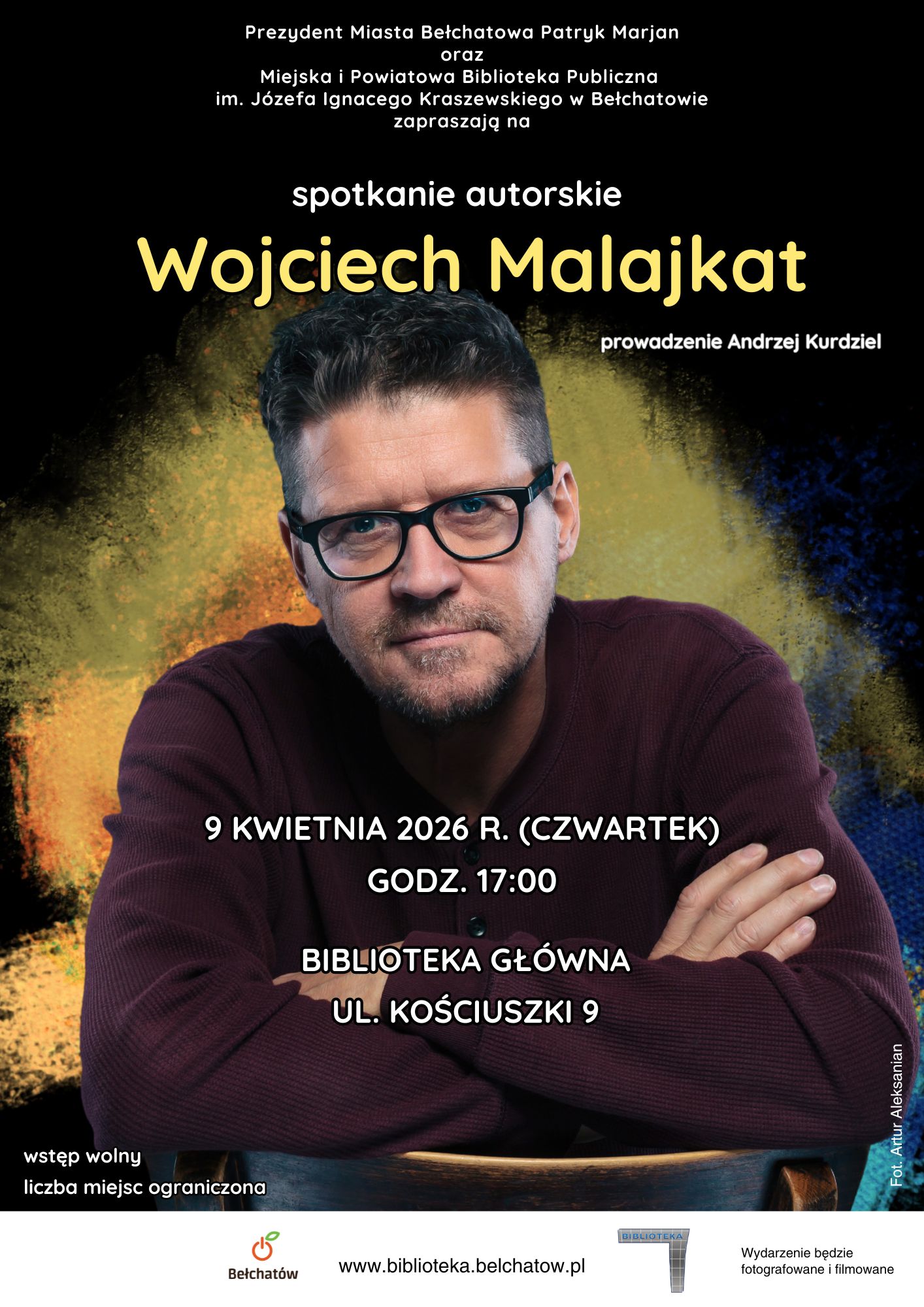Miejska i Powiatowa Biblioteka Publiczna w Bełchatowie zaprasza na spotkanie z Wojciechem Malajkatem.