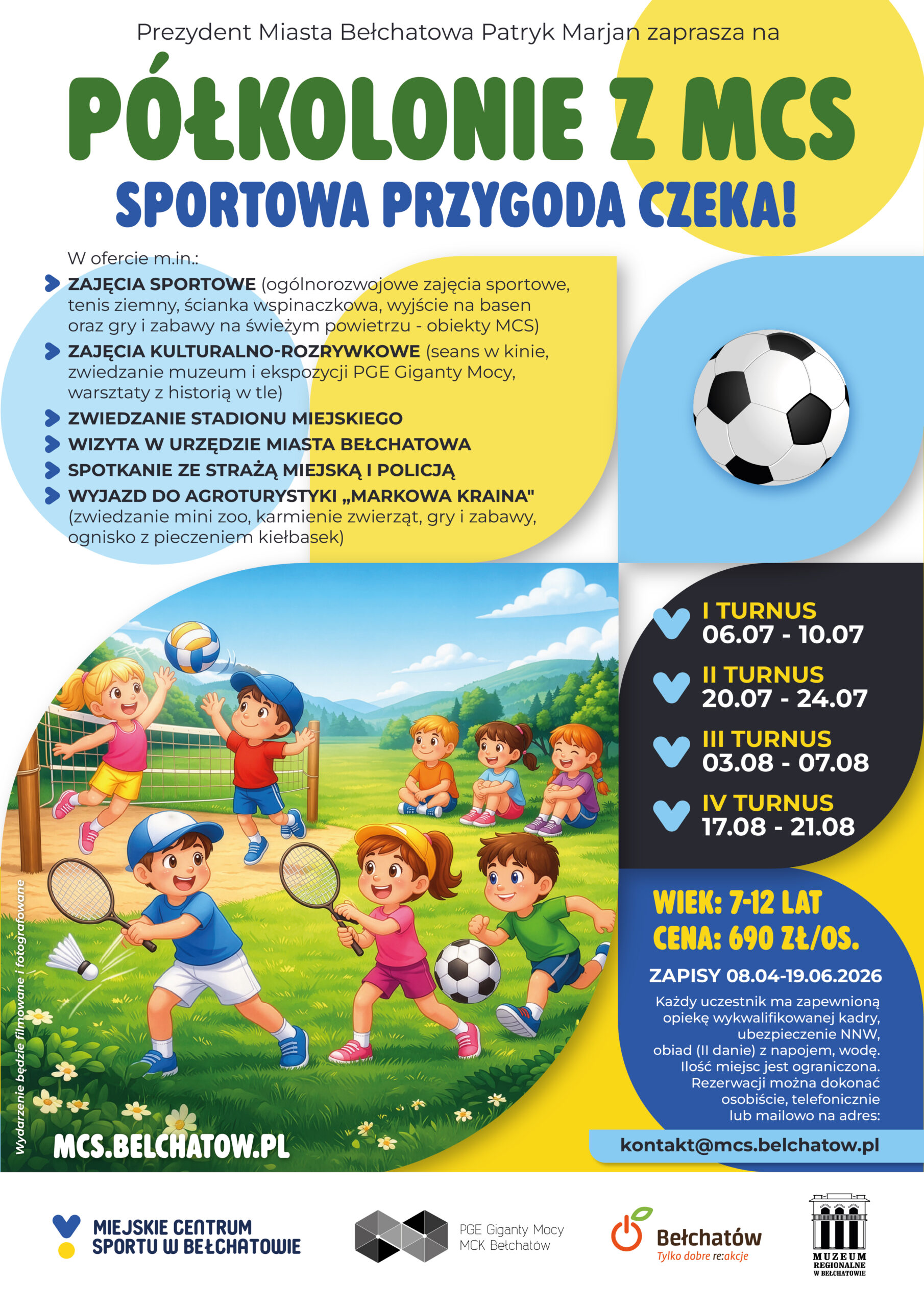 Choć do wakacji zostało jeszcze trochę czasu to Miejskie Centrum Sportu w Bełchatowie już zachęca do zapoznania się z ofertą letnich półkolonii dla najmłodszych. W programie m.in zajęcia sportowo-rekreacyjne, gry i zabawy ruchowe na świeżym powietrzu, konkursy sportowe oraz codzienna gimnastyka bądź joga.