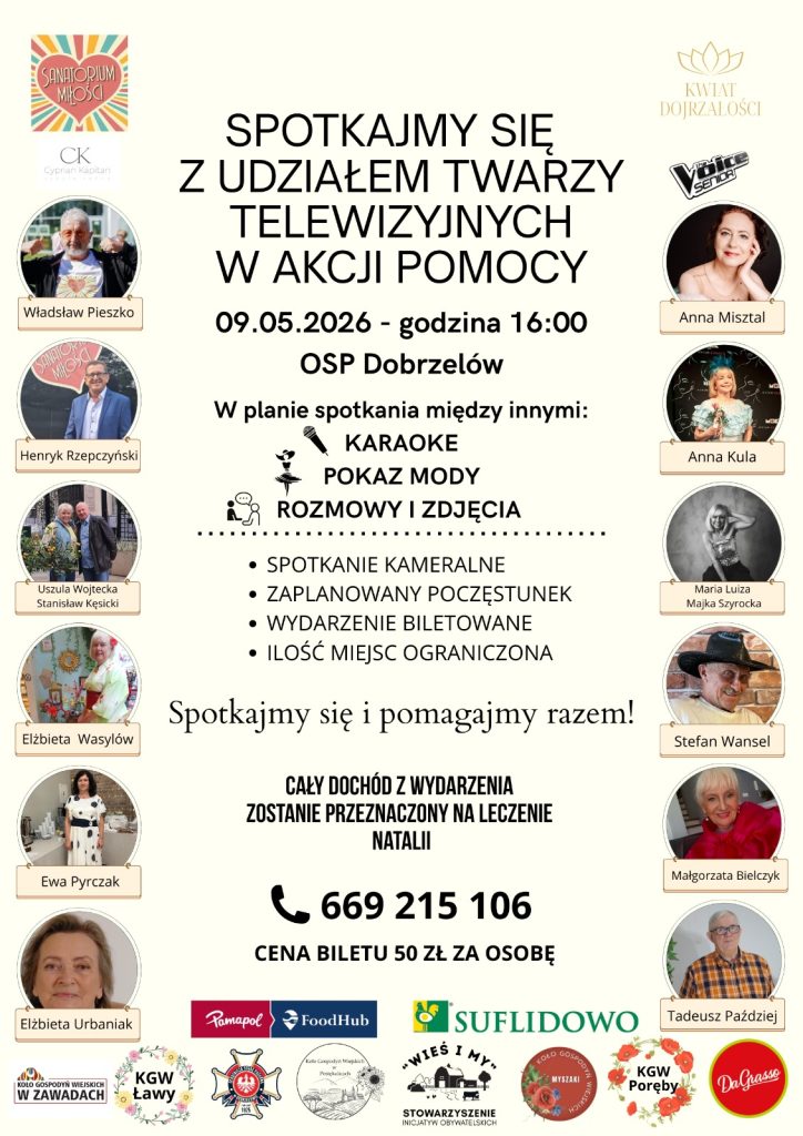 Spotkanie z telewizyjnymi osobowościami, wspólna zabawa i pomoc. Przed nami wyjątkowe wydarzenie, które odbędzie się 9 maja w OSP Dobrzelów. Będzie to wyjątkowy czas by spędzić popołudnie w inspirującym towarzystwie, ale też szansa, by zrobić coś dobrego dla drugiego człowieka.