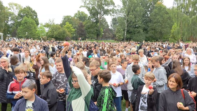 Na błoniach przy Muzeum Regionalnym w Bełchatowie dziś odbyła się wyjątkowa próba bicia Rekordu Polski w jednoczesnym jedzeniu jabłek. Wszystko w ramach Festiwalu Sztuki Jabłka.