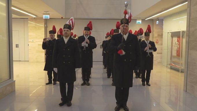 Górniczą pobudką zainaugurowano obchody tegorocznej Barbórki. Orkiestra KWB Bełchatów zagrała najpierw dla zarządu PGE GiEK - muzycy pojawili się w siedzibie głównej przy ul. Węglowej.