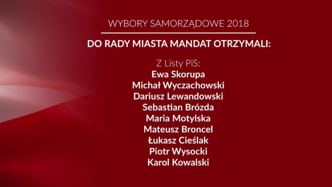 9 radnych z list PiS, 5 z PLUS-a, 4 z Koalicyjnego Komitetu Platforma Obywatelska, 3 z Ziemi Bełchatowskiej i 2 z KWW Marioli Czechowskiej. PKW ogłosiła wyniki wyborów do Rady Miasta Bełchatów.
